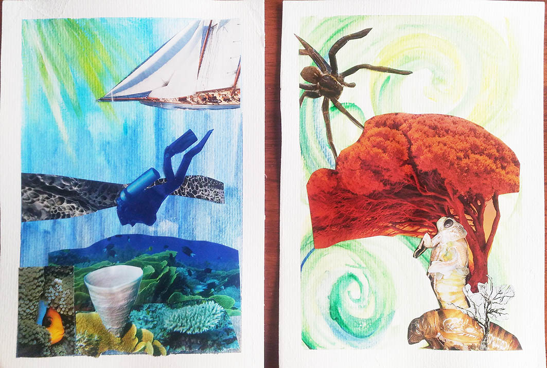 Here are some examples of creative prayers – left: weaving as prayer, middle and right: collage as prayers.
